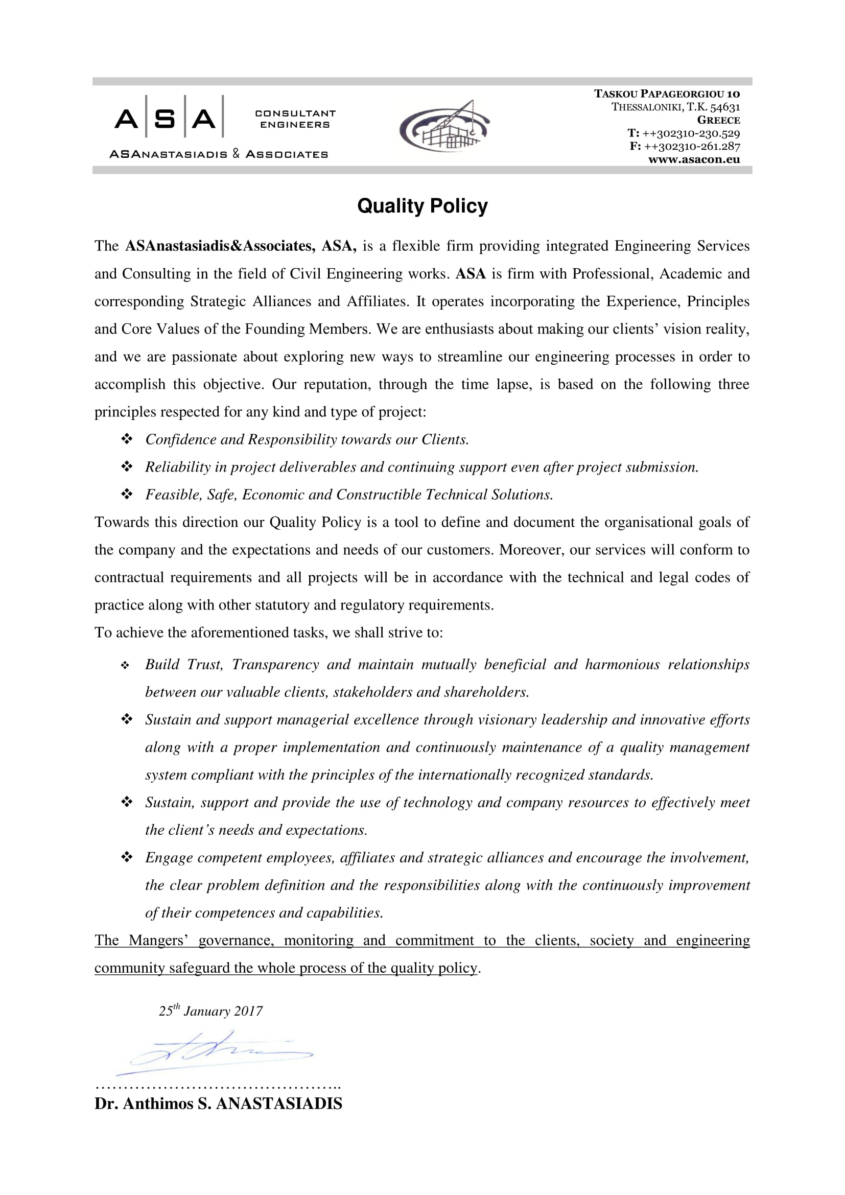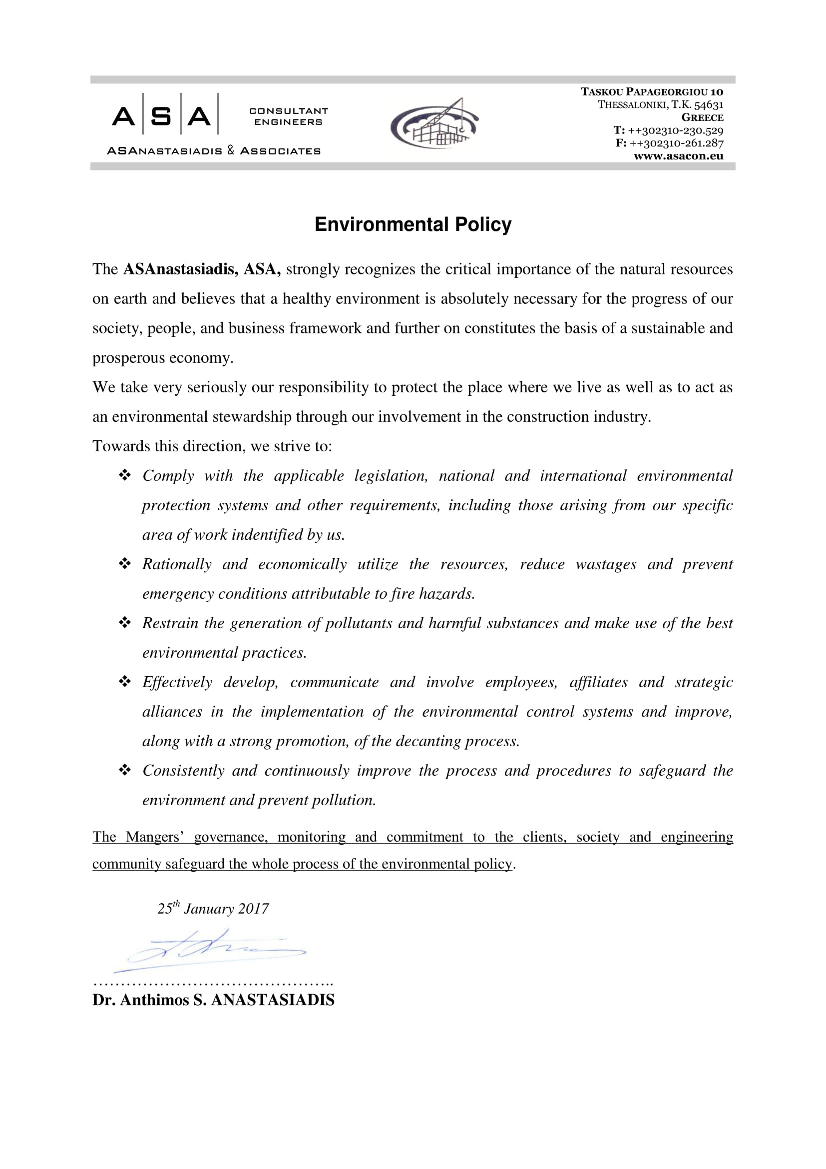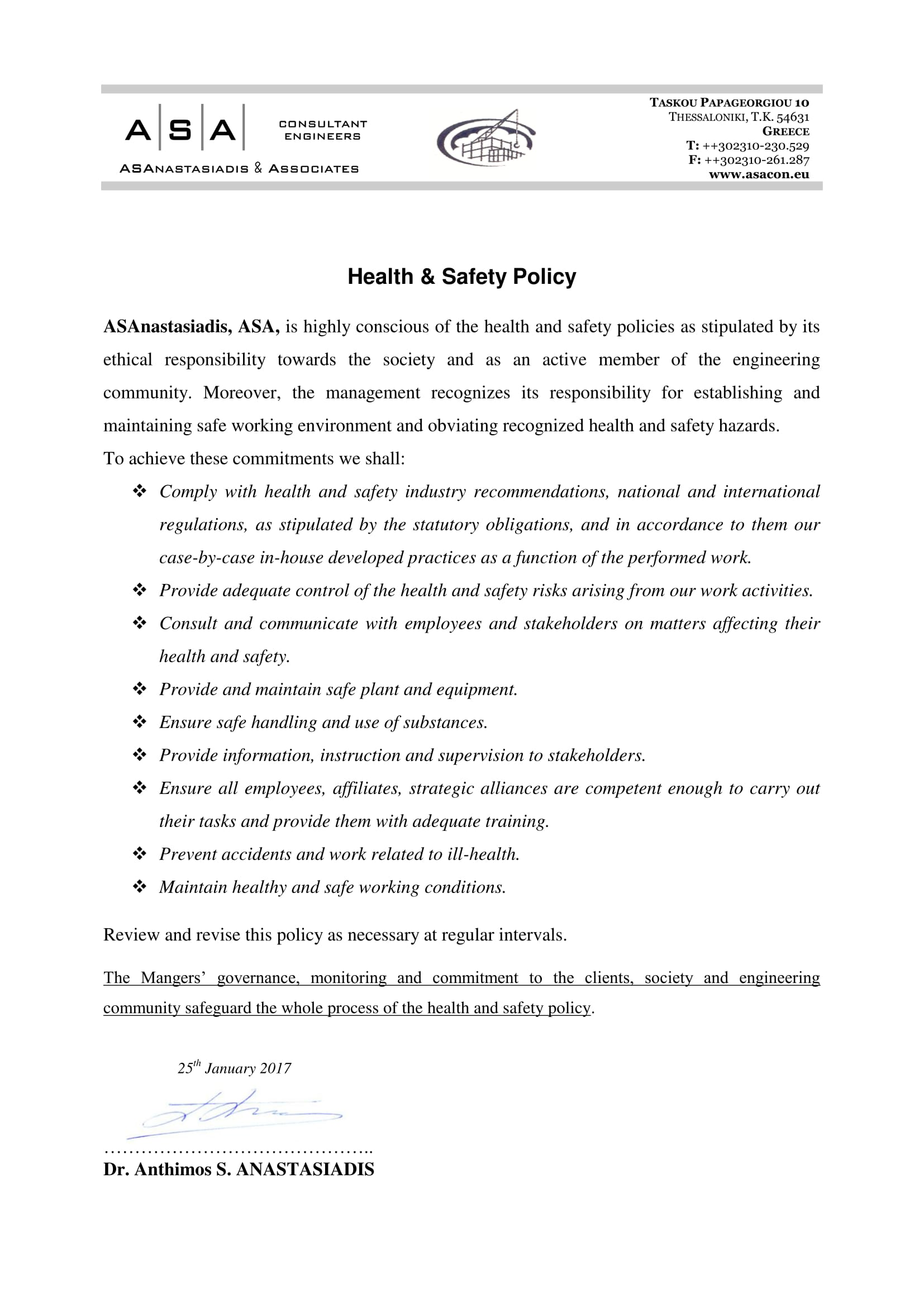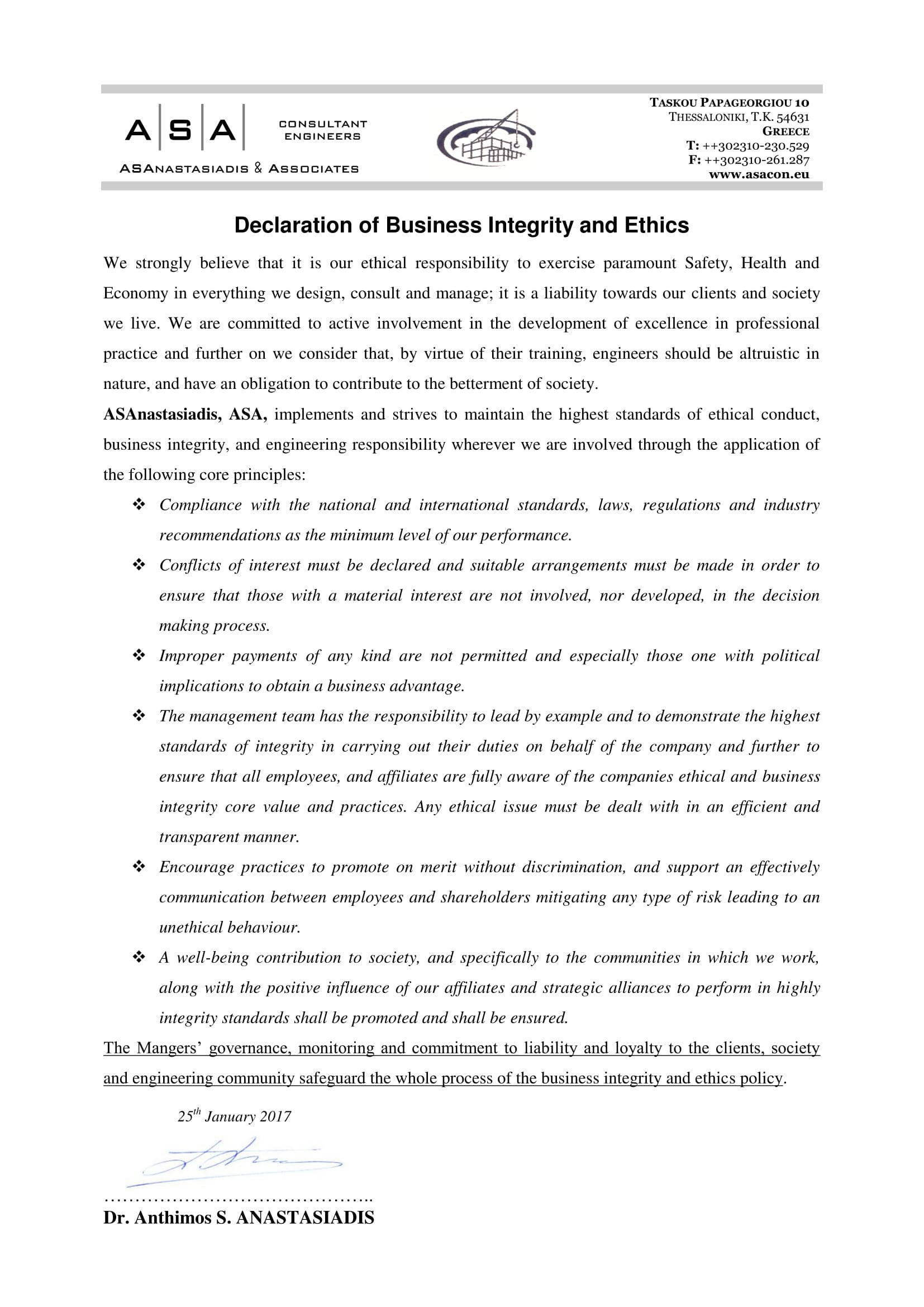 Declaration of Business Integrity & Ethics Environmental Policy Health & Safety Policy Quality Policy